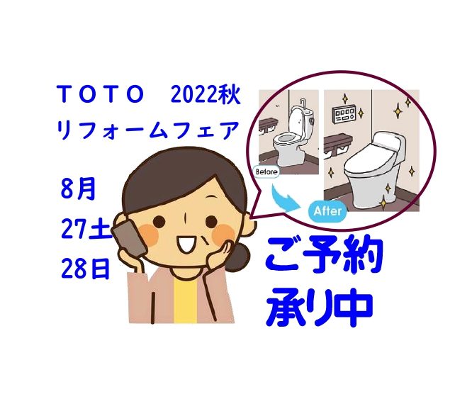 8/27・28は、TOTOリフォームフェアの日!! 今回も完全ご予約制
